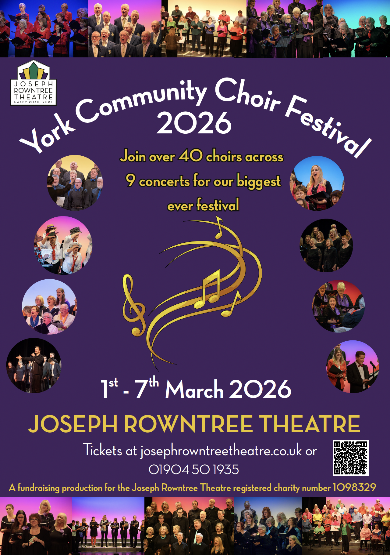 1 March 20262:30 pmJoseph Rowntree Theatre, York, YO31 8TAWe're singing as part of the York Community Choir Festival